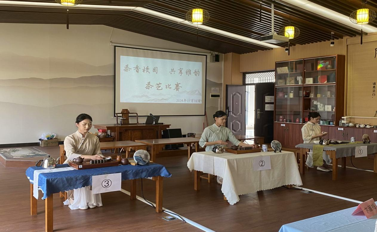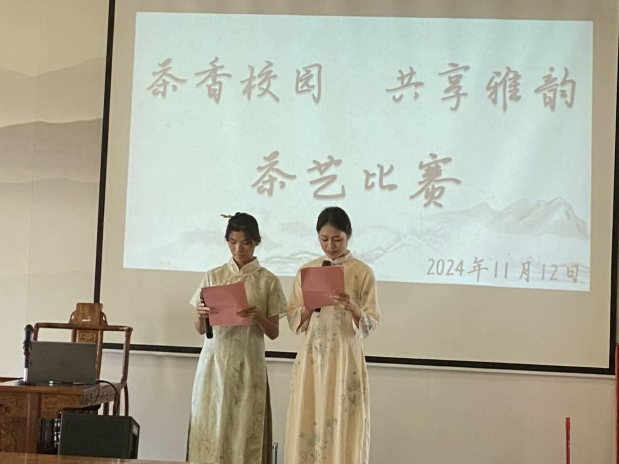 1月12日下午,由太阳成集团tyc122cc主办、太阳成集团tyc122cc茶艺社承办的“茶香校园,共享雅韵”主题的茶艺比赛在武鸣校区地信楼一楼茶艺室举行。此次活动邀请公司辅导员陈春容老师、茶艺师谢淑谊和卞淑梅、茶艺社社长张鹏作为此次茶艺比赛评委。此外,邀请茶艺社对茶艺感兴趣的学员代表全程观赛学习,众多热爱茶艺的同学们齐聚一堂,共同开启了一场充满韵味与文化气息的校园茶艺之旅。