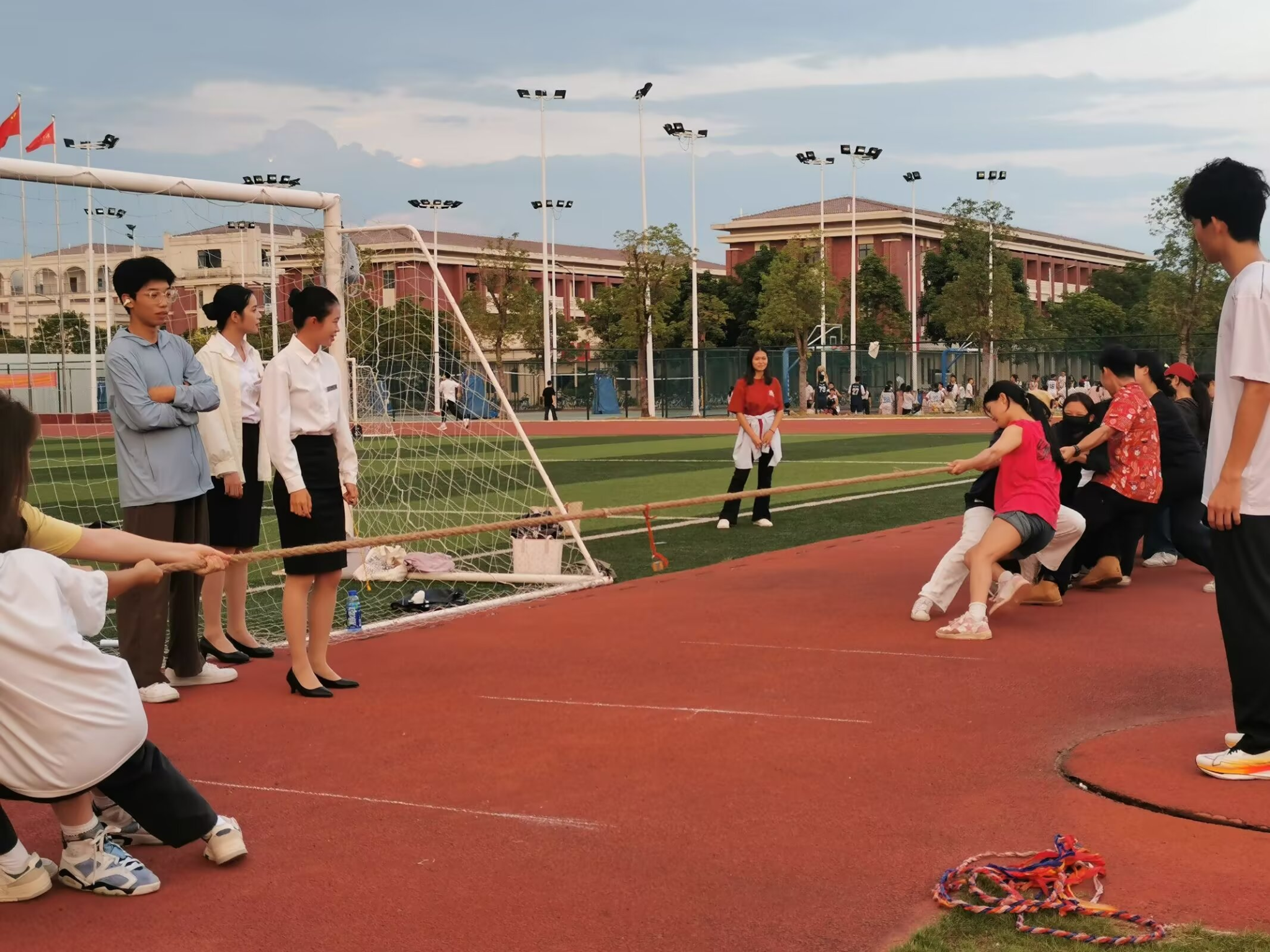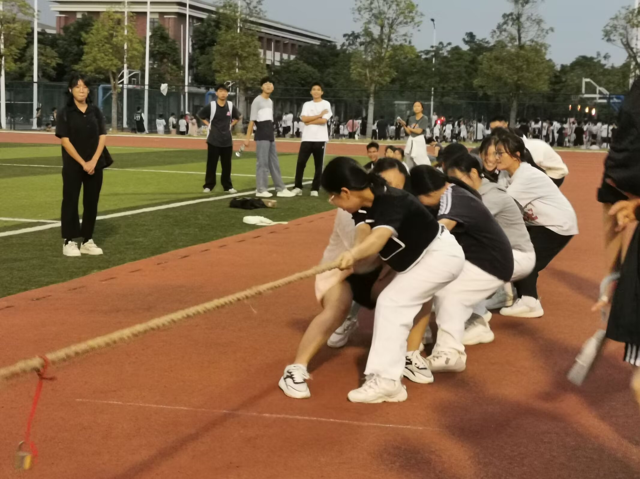 随着裁判的一声哨响,拔河比赛在气势昂扬的激动气氛中正式拉开帷幕。赛场上,参赛队伍精神抖擞,队员们个个咬紧牙关,全力以赴。双方队伍你来我往,激烈对抗,引得现场观众呐喊助威声此起彼伏。各队队员相互鼓励,彼此配合默契,展现出了极高的团队精神。不少观众被这种氛围所感染,纷纷为参赛队伍加油打气。
