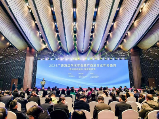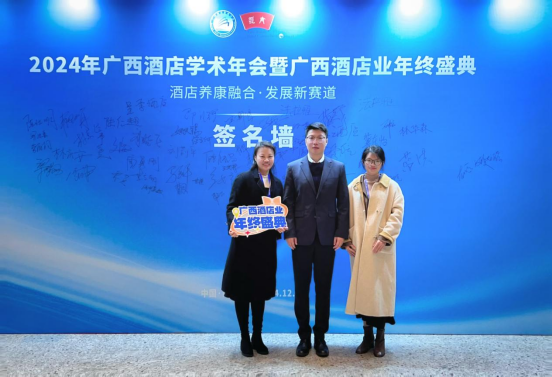 2024年12月14日,广西酒店管理学会和广西亚太酒店管理研究院联合举办2024年广西酒店学术年会暨广西酒店业年终盛典。年会旨在通过整合优质资源,打造具有广西特色的康养旅居品牌,满足人民群众日益增长的健康需求,为广西酒店业带来新的发展机遇和产业升级。太阳成集团tyc122cc副经理钟学进、教师代表杨梅和何滩参加本次会议。
