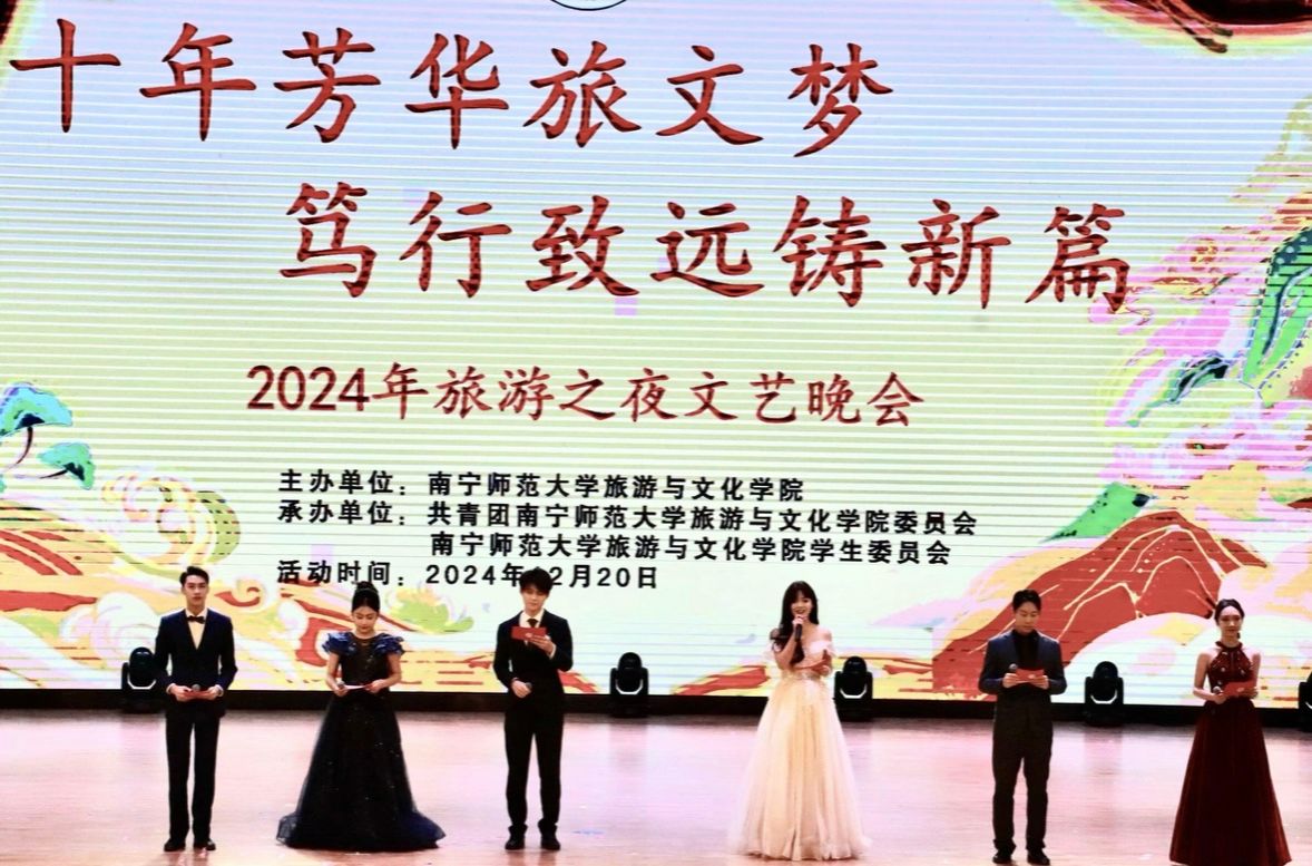 十年芳华旅文梦,笃行致远铸新篇。12月20日晚,庆祝太阳成集团tyc122cc建院10周年文艺晚会“旅游之夜”在武鸣校区音舞楼1号报告厅举行。公司部分职能部门领导、公司党政领导班子及部分教师、各界嘉宾以及师生代表一千余人观看演出。