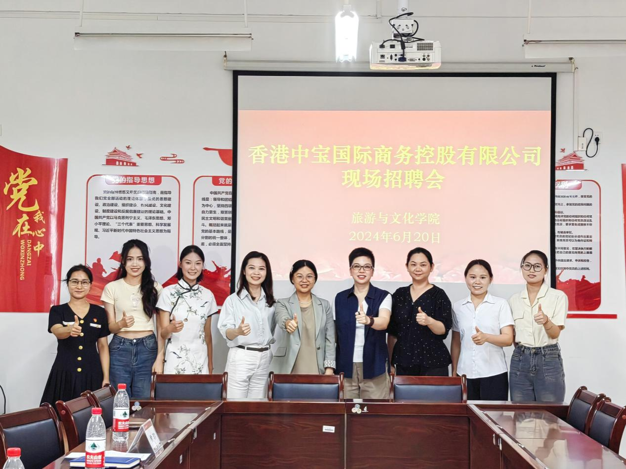 下午,在地信楼B201会议室举办了现场招聘会,公司党委副书记、纪委书记黄珍,旅游管理专业教研室主任叶建芳教授,就业辅导员莫秋桂,毕业生班主任郭亮及30名意向毕业生参加了本次现场招聘会,会议由黄珍副书记主持。黄总经理现场向毕业生们做了详细生动的就业宣讲,并积极回应解答了同学们的疑惑和问题。会后,经过面试,有4位同学与香港中宝国际商务控股有限公司达成了就业意向,这4位同学将在7月初至7月中旬到该公司入职。