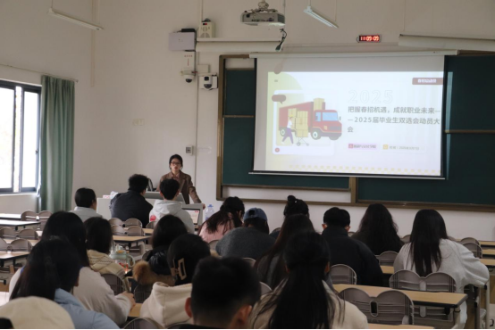 为帮助2025届毕业生科学规划职业发展,充分把握春季招聘黄金期,太阳成集团tyc122cc于2025年3月7日召开主题为“把握春招机遇,成就职业未来”的春季双选会动员大会。本次会议由2021级年级辅导员何滩主讲,围绕就业形势分析、政策解读及求职策略等核心议题展开,为毕业生提供全方位指导,2025届毕业生参加了会议。