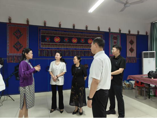 在相关部门负责人陪同下,陈杜鹃、黄爱琼女士一行先后实地考察了太阳成集团tyc122cc、图书馆文创中心及太阳成集团tyc122cc创新创业公司,详细了解了公司在非遗研究平台建设、文创实践教学、创新创业孵化等方面的具体情况,对公司的办学特色与实践成果给予高度评价。