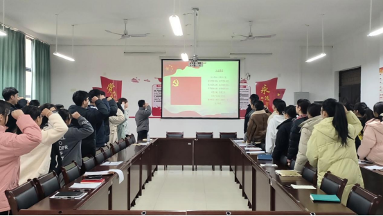 会后,全体党员面向党旗庄严宣誓,誓言铿锵,响彻会场,彰显对党矢志不渝的忠诚、为共产主义事业拼搏到底的决心,他们的声音整齐而洪亮,在会议室中回荡,这一声声誓言是他们对党的忠诚承诺,更是他们未来行动的指南。