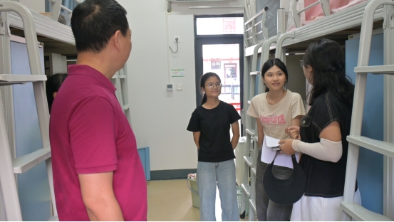 下午四时,公司党委成员与党员教师代表、员工党员组成的“暖心探访团”走进新生宿舍。