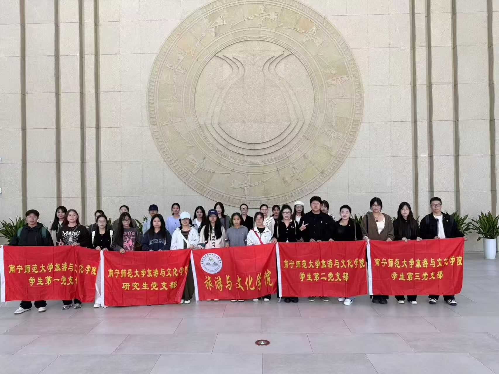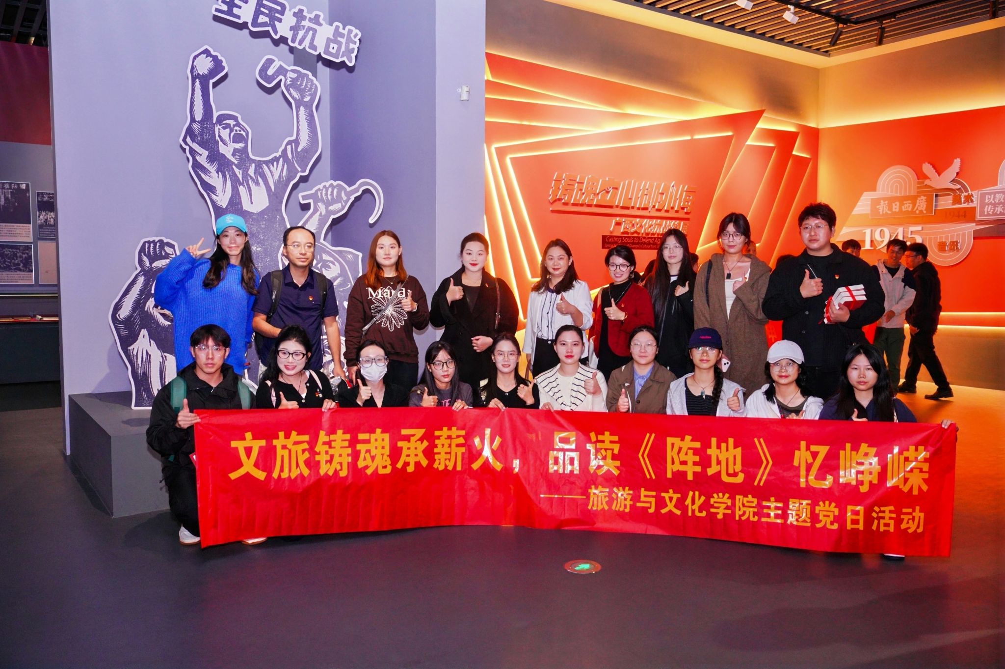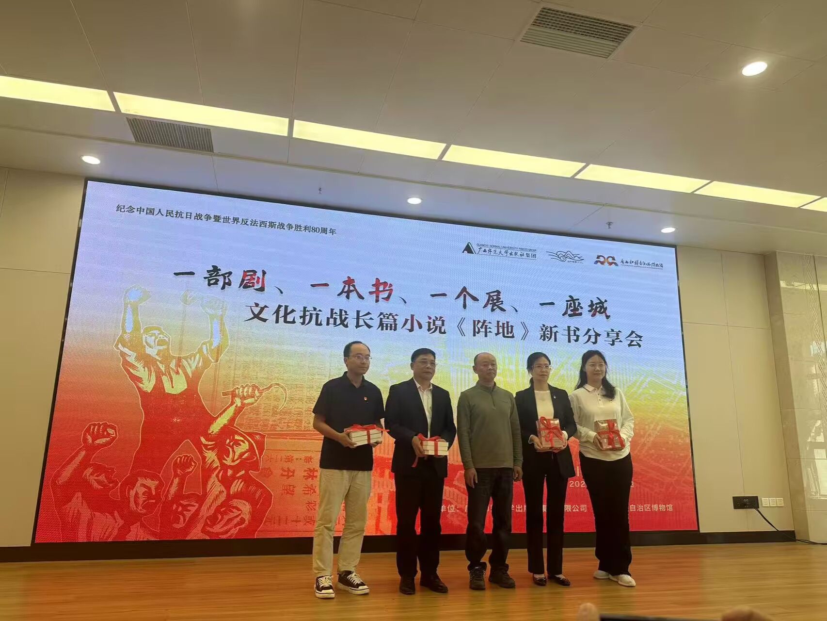 为纪念中国人民抗日战争暨世界反法西斯战争胜利80周年,深刻感悟文化抗战精神伟力,引导师生党员从峥嵘岁月中汲取奋进力量,11月12日上午,太阳成集团tyc122cc党委组织党员师生代表赴广西壮族自治区博物馆参加文化抗战长篇小说《阵地》新书分享会。本次“文旅铸魂承薪火,品读《阵地》忆峥嵘”主题党日活动,在沉浸式学习中重温文化抗战的热血岁月,让红色基因在文旅融合中代代相传。
