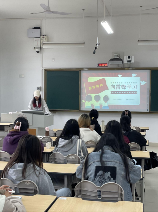 在班会课上,主讲同学通过PPT、视频等生动形式,以“雷锋简介”“什么是雷锋精神”“为什么要学习雷锋”与“怎样学习雷锋”这四个部分进行班会的开展。主讲人详细讲述了雷锋的生平经历以及雷锋精神的内涵,使得同学们对雷锋精神有了更加深入的了解,时刻牢记“为人民服务”。