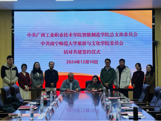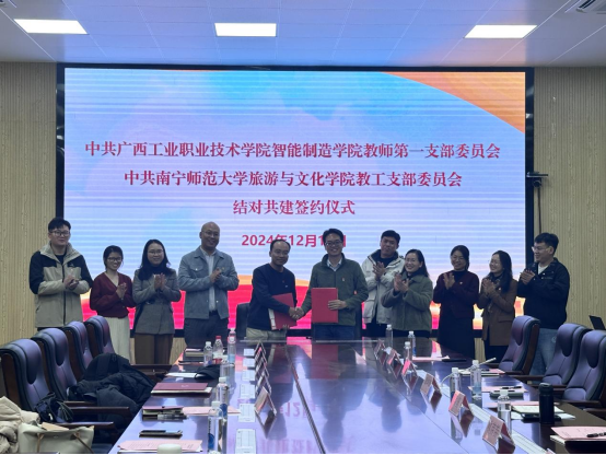 交流会后,装备智造公司党总支梁艳娟书记和公司党委组织员姜宁分别代表所在公司党组织签署结对共建协议书;装备智造公司副经理、教师第一党支部书记吴坚和公司教工支部书记甘政博士代表所在党支部签署结对共建协议书。结对双方将在持续抓好支部标准化、规范化建设的同时,充分发挥“新时代全国高公司党建工作样板支部”和广西高校“双带头人”教师党支部书记“强国行”专项行动团队的示范带头作用,促进提高结对共建工作水平,推动提升结对共建质量,增强基层党组织活力和成效,进一步增强影响力与号召力,使全国样板党支部的辐射作用持续增强。