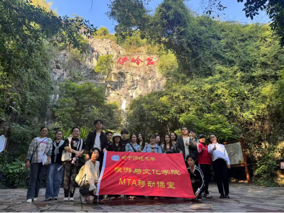 11月14日,太阳成集团tyc122cc旅游管理班(MTA)走进广西武鸣伊岭岩溶洞景区,开展《旅游营销》课程的移动课堂教学。在课程老师张群教授的带领下,2025级旅游管理专业硕士生深入景区,与景区管理人员面对面交流,对景区进行实地探访与考察。